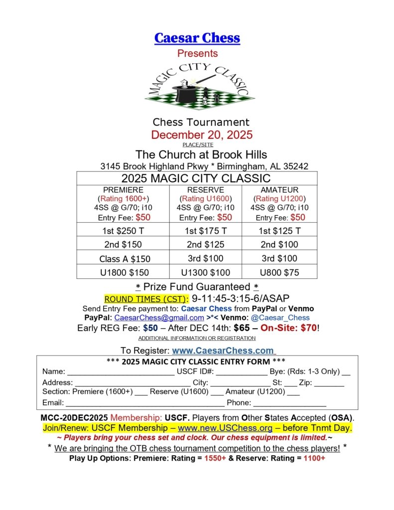 Email: Caesar Lawrence – director@CaesarChess.com
